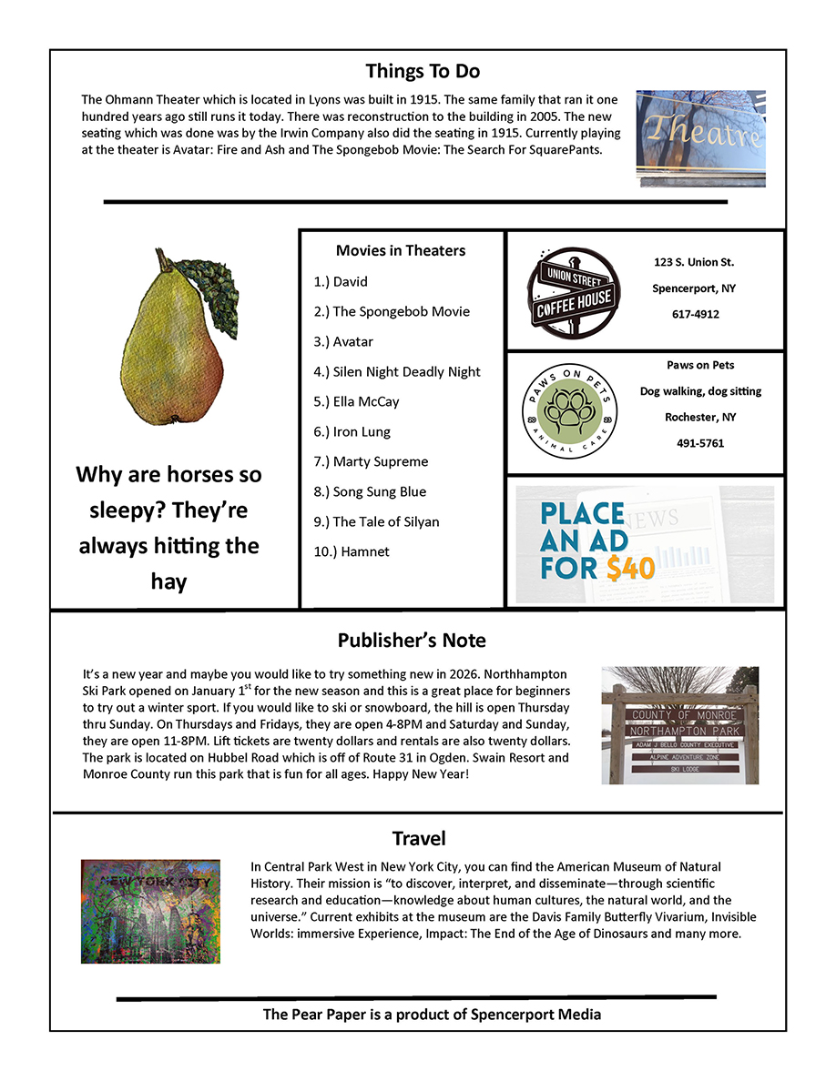 If you would like to advertise, email dan@spencerportmedia.com
