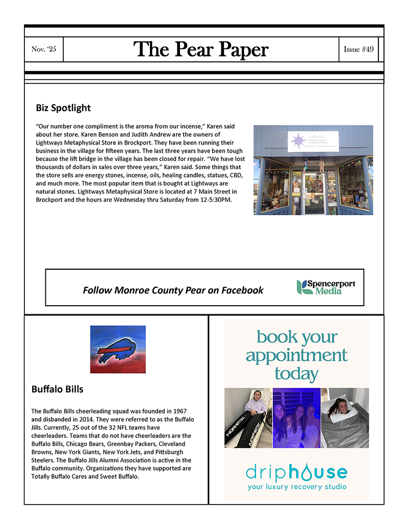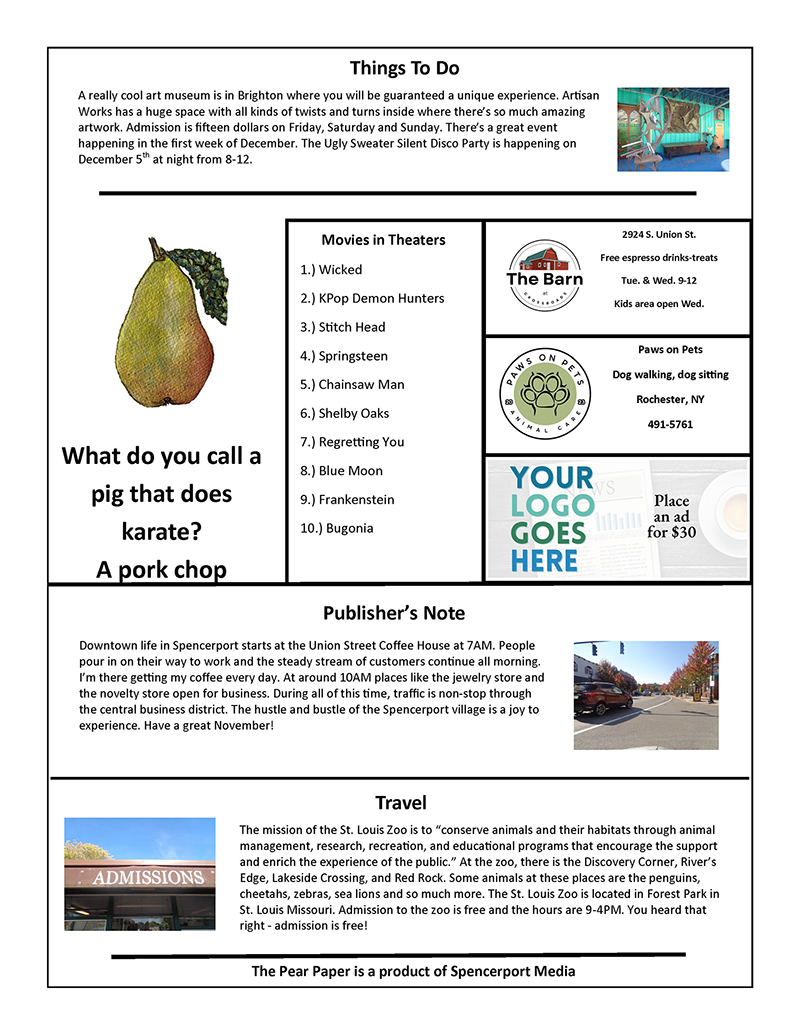 Advertise in The Pear Paper - $60.00 for big ad and $30.00 for small ad.
